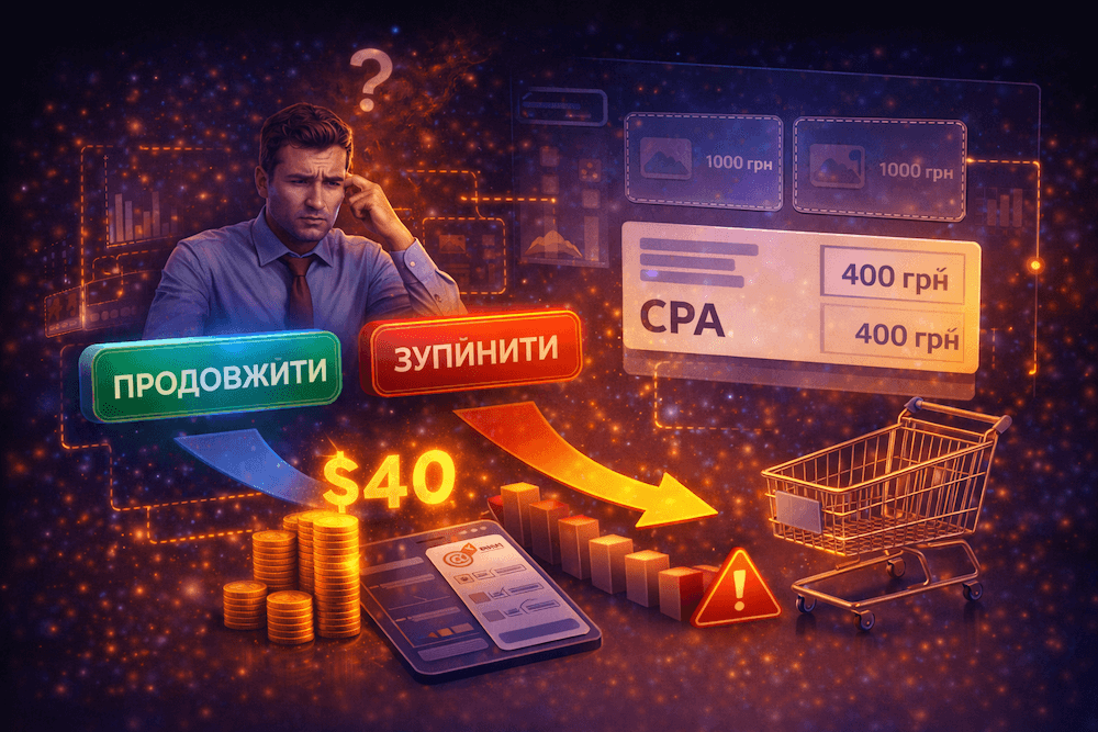 Загальне правило в індустрії виглядає так: якщо кампанія витратила суму, рівну 1–2 вашим цільовим CPA, і не принесла жодної покупки — це вже сигнал до паузи або переосмислення. Якщо ви навіть не знаєте своє CPA — це перша проблема, яку варто вирішити ще до запуску реклами.